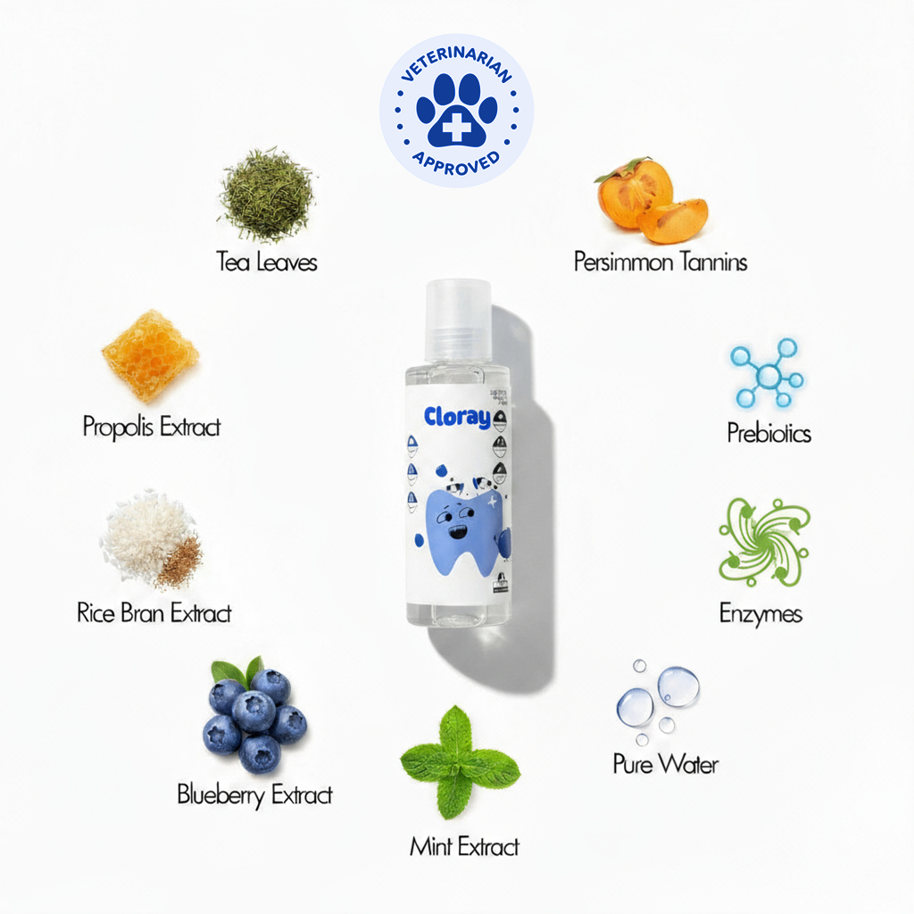 "I was so embarrassed by my pup's yellow teeth and horrible breath. The vet wanted $800 for a dental cleaning and I just couldn't afford it. After using Cloray FreshSip for about 6 weeks, I can't believe the difference! His teeth are so much whiter and his breath doesn't clear the room anymore. Even my vet asked what I've been doing differently!"